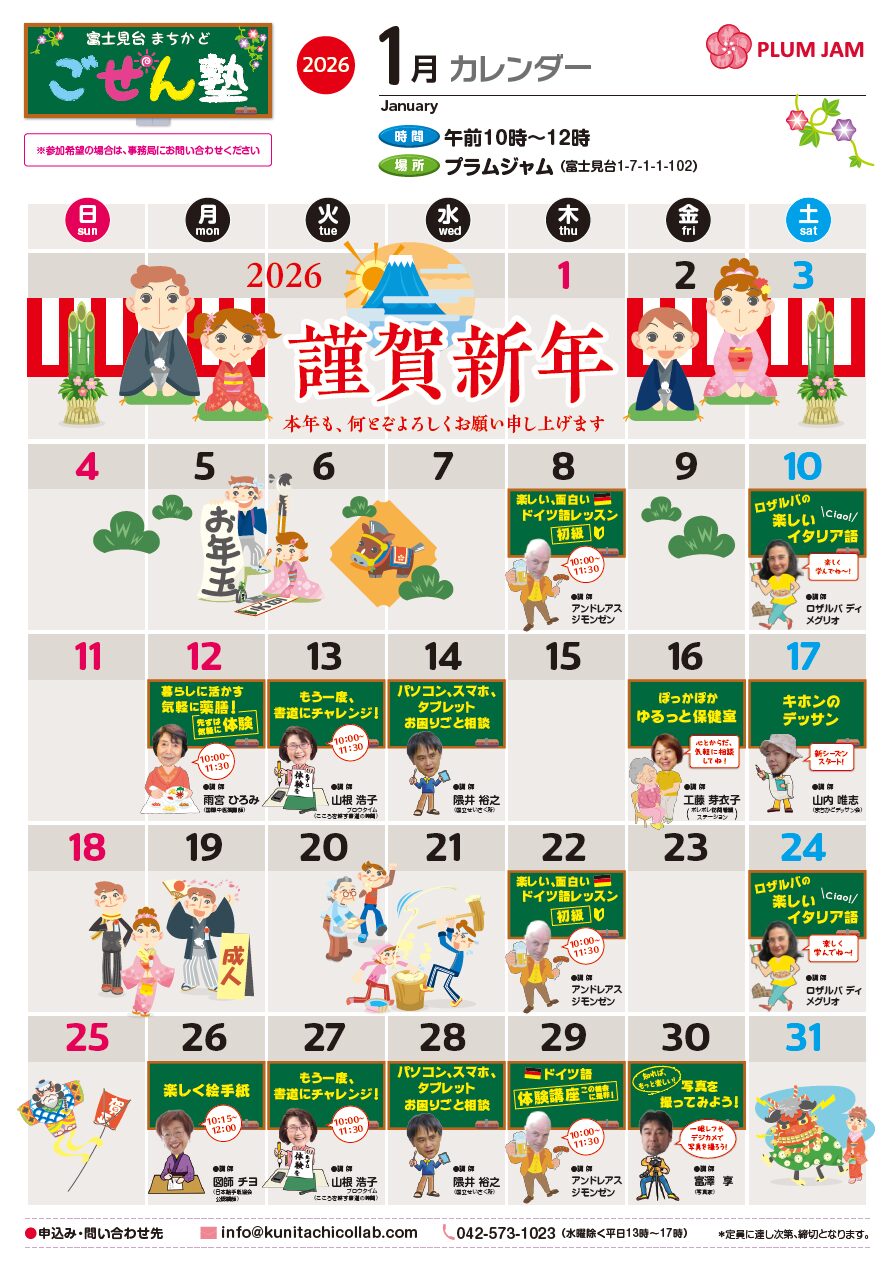 ごぜん塾1月カレンダー